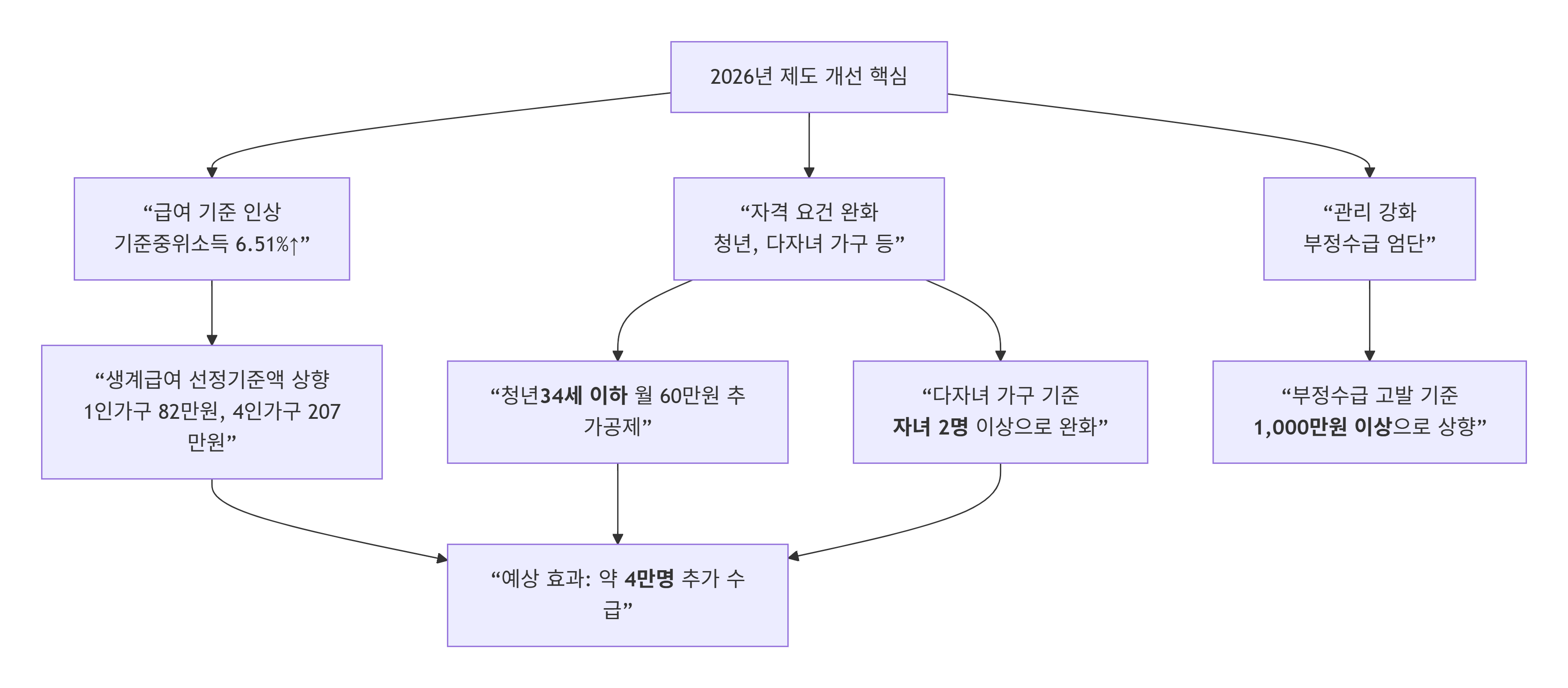 📌 중요한 포인트: 이번 제도 개선은 2026년 1월 1일부터 적용됩니다. 따라서 현재 생활에 어려움이 있으시다면, 과거에는 자격이 안 된다고 생각했더라도 새로운 기준으로 다시 한번 확인해 보시기를 적극 권장합니다.